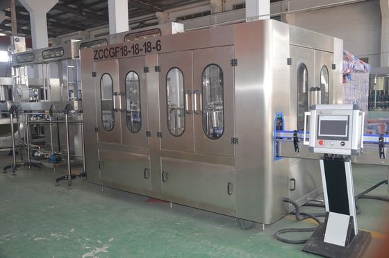 식품 위생 스테인레스 스틸 자동 PLC 제어 시스템 시간당 500 ~ 20000 병의 충전 용량 간편한 조작 설치를 제공 세 가지에 하나의 충전 장치 (세척기를 포함), 필러, 캡) 는 차와 주스와 같은 물과 뜨거운 음료를 채우기 위해 사용됩니다.